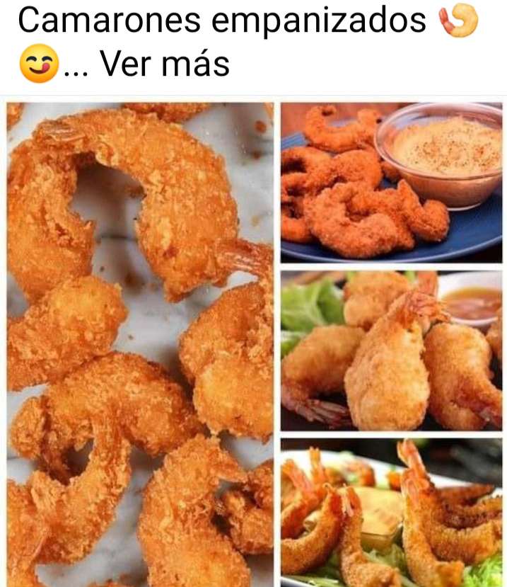 2-Calentamos en una sartén el suficiente aceite de oliva para cubrir los camarones, cuando ya esté caliente, untamos los camarones uno a uno, primero pasándolos por la harina, luego por el huevo batido, luego por el polvo para empanizar y por último los freímos en la sartén.