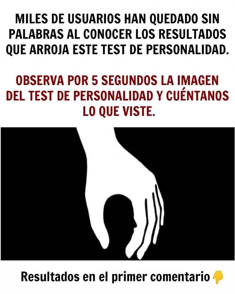Si en cambio la mano fue lo primero que lograste observar tras mirar detenidamente la imagen,déjanos contarte que detrás de tu personalidad y de tu ser se esconde una persona muy ambiciosa que detesta conformarse con poco, es por ello que siempre te pones a prueba, lo cual te permiten superarte. Lo mejor de todo, es que detrás de tu personalidad se esconde alguien que odia rotundamente todo tipo de rencores y problemas.