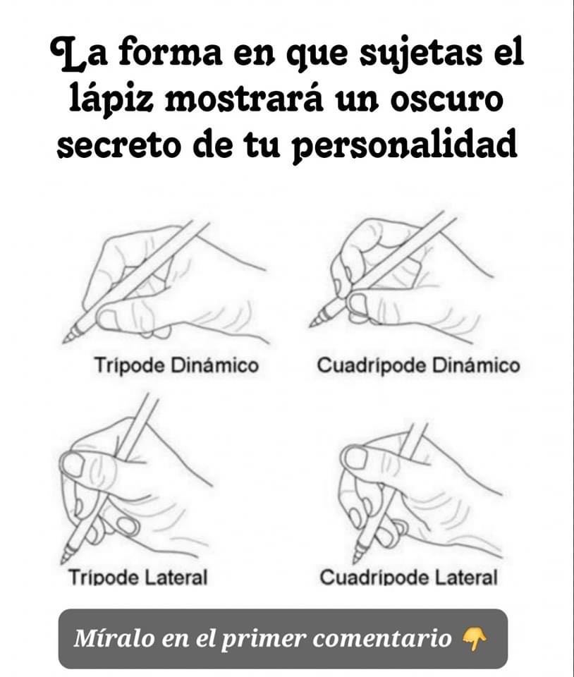 Para que sepas más sobre ti, te dejaré una imagen donde vas a tener que seleccionar la alternativa que se se ve a la manera en que agarras dicho objeto.